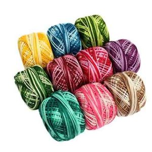 10 Bobinas de Hilo de Algodón para Ganchillar a Rayas de Colores -950 Metros- Arte del Tejido de Cordón de CurtzyTM