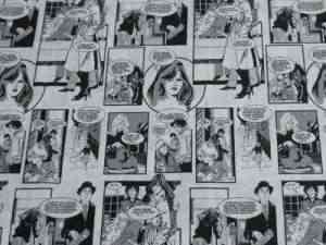 Metraje 0,50 mts tejido loneta estampada Ref. Comic, con ancho 2,80 mts.